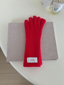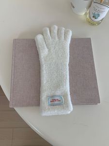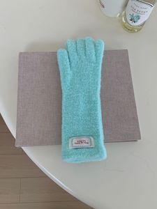简约糖果色软糯绒毛手套女秋冬新款保暖露指可触屏骑行防寒针织潮