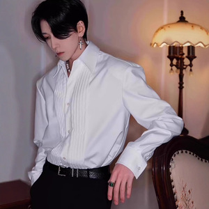 春秋男士复古宫廷风褶皱衬衫长袖小众设计感简约网红气质衬衣时尚