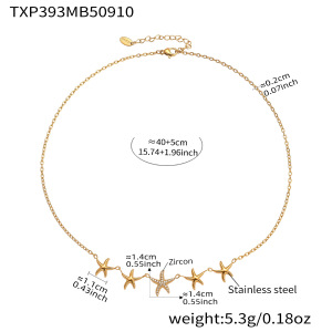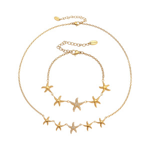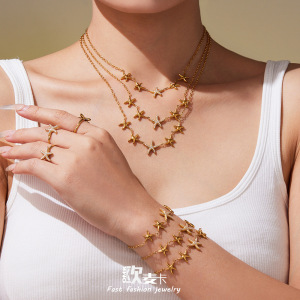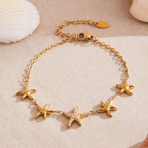欧麦卡ins小众设计感不锈钢海星镶锆石手链项链戒指耳环套装饰品