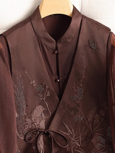 现货新中式国风安可拉红色重工提花刺绣旗袍衬衫女马甲假两件衬衣