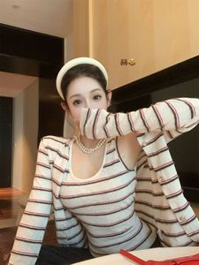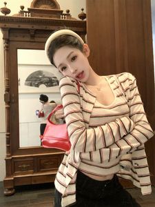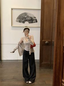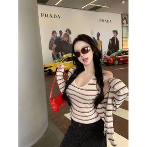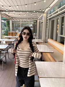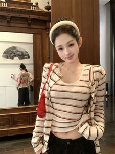 设计感慵懒风撞色条纹长袖针织开衫女秋季两件套纯欲吊带背心上衣