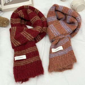 2025新款韩版条纹松软毛线围巾女秋冬保暖百搭学生情侣针织围脖潮