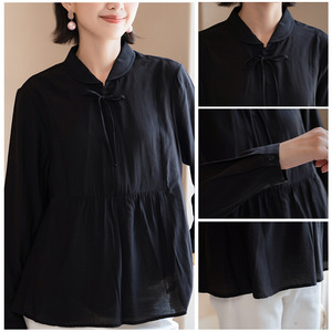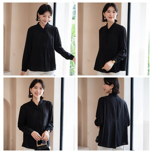 YUN韫文艺纯色双层单排扣长袖衬衫女简约秋装新款宽松显瘦衬衣