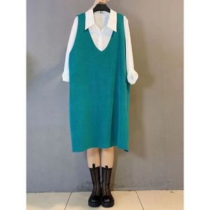 胖mm韩范针织马甲裙显瘦衬衫两件套秋新款简约大码休闲时尚套装女