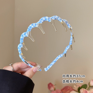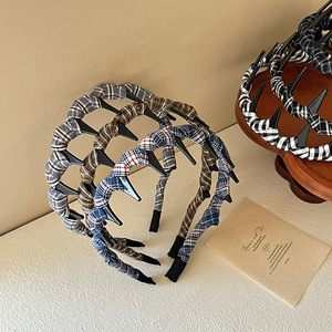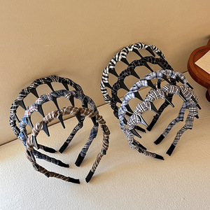 高级感格子正反两戴发箍女齿梳波浪洗脸压发卡日常外戴高颅顶头箍