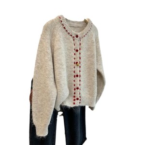 杏色软糯加厚圆领毛衣外套女2025秋冬新款设计感慵懒针织开衫上衣
