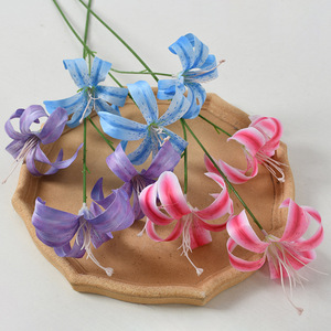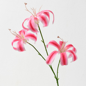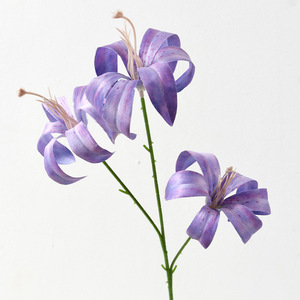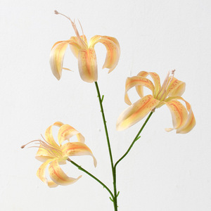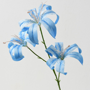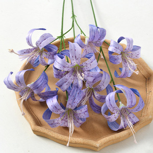 仿真花3头金百合3D打印萱草百合婚礼婚庆酒店插花花艺花排莫奈风