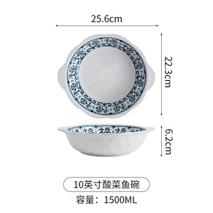 10寸双耳石纹大汤碗【多福蓝】