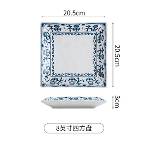 8.25寸波浪四方盘【多福蓝】