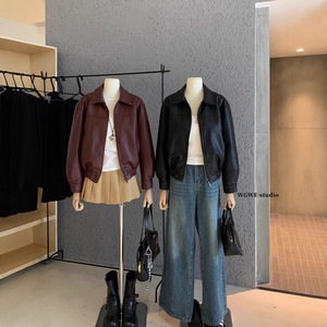 WGWE6946#美式复古pu皮夹克外套高级感气质宽松机车皮衣