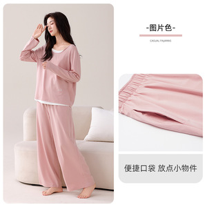 【带胸垫】2025年新款女士睡衣莫代尔棉长袖春秋季条纹家居服套装
