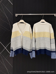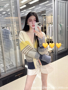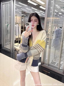 2025秋冬新款TB马卡龙条纹开衫法式条纹冰淇淋高克重重工款针织