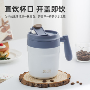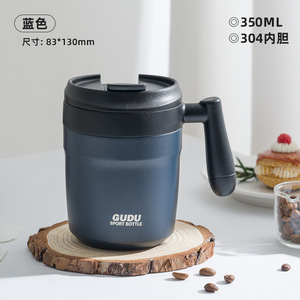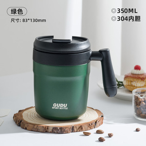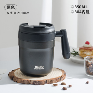 跨境新款概念办公室保温杯男女士不锈钢咖啡马克杯便携家用带手柄