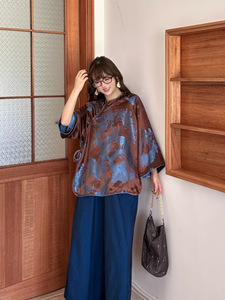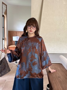 南油批发2025年秋季新款 真丝老缎定位花太太服上衣 文艺时尚衬衫