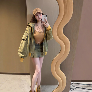 SK神殿花园牛仔阔身帽衫重工抽绳上衣提花复古外套
