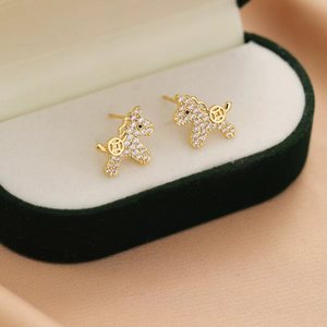 萌趣马上有钱微镶满钻小马耳钉女小众独特设计感耳环精致甜美耳饰