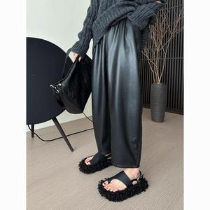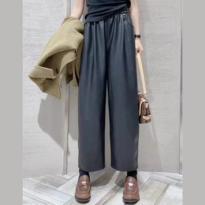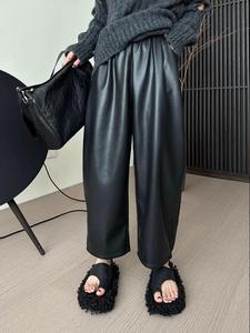 2025新款皮裤女秋季韩版pu皮高腰阔腿裤九分裤百搭时髦哈伦裤女款