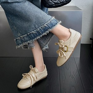 牛皮版~真皮复古风皮带扣德训鞋女软底系带休闲运动芭蕾舞小皮鞋