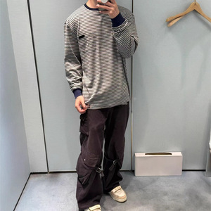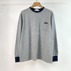 秋冬新款胸前微标刺绣字母复古学院风条纹休闲宽松长袖T恤情侣款