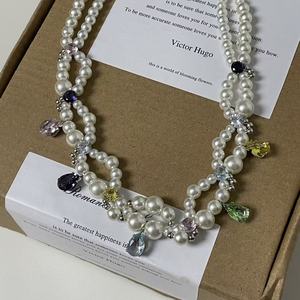 法式复古小香风镶钻珍珠水滴项链轻奢高级感时尚优雅潮流锁骨链女