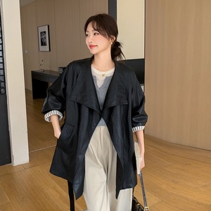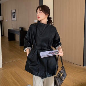 黑色港风复古设计感宽松显瘦皮衣女秋季2025新款百搭PU皮夹克外套