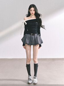 甜欲漩涡 黑色斜肩T恤+灰色半身裙