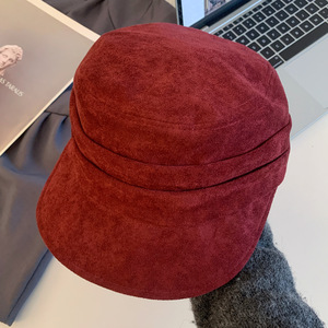日式复古麂皮褶皱宽檐鸭舌帽女时尚文艺大头围显脸小平顶马术帽子