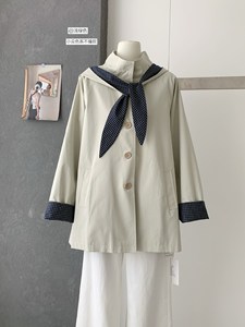 英伦风格子撞色风衣外套女2025秋季新款中长款连帽上衣