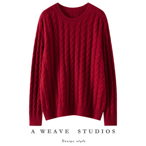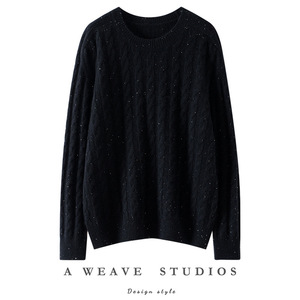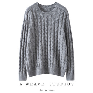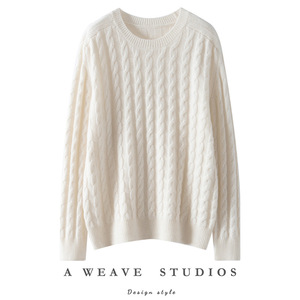 绞花纯色毛衣秋冬新款针织长袖套头内搭女式圆领加厚山羊绒衫