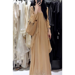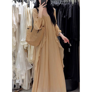 轻国风肌理感露背吊带连衣裙女夏季清冷感气质宽松显瘦衬衫两件套