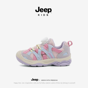 Jeep女童鞋秋季户外网面透气宝宝鞋2025新款中小童户外轻便机能鞋