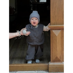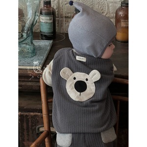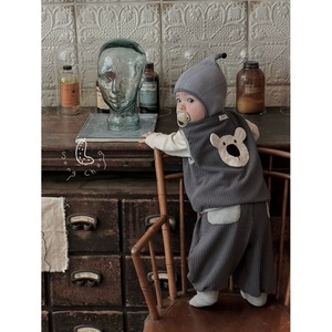 秋新款男女宝小熊无袖坎肩卫裤套装可爱休闲韩版两件套现货