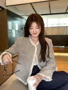 2025年秋季法式小香风粗花呢短外套女流苏边气质百搭高级感上衣女