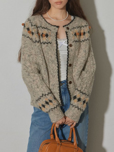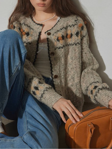 复古美学!菱格混色系扣针织开衫女秋季新款外搭上衣外套