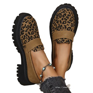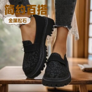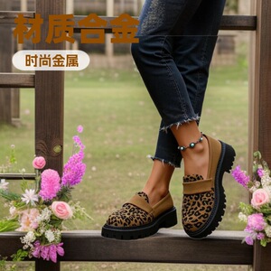 跨境大码豹纹乐福鞋2025秋季新款单鞋英伦风乐福鞋一脚蹬懒人鞋女