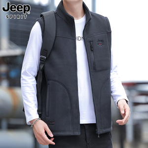 JEEP吉普2025秋冬季新款男马甲抓绒保暖坎肩商务休闲外套潮流7100