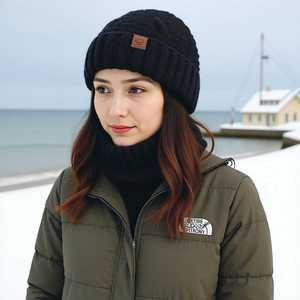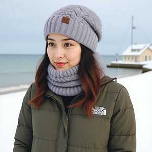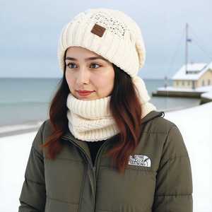 TEMU冬季欧美帽子围脖套装女士防寒保暖针织帽护耳套头毛线帽跨境