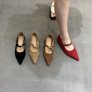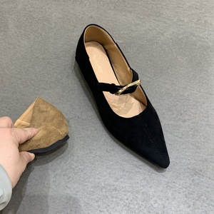 韩系绝美尖头绒面浅口单鞋女2025春秋新款百搭通勤内增高玛丽珍鞋