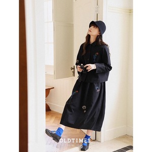 刺绣100肌理棉黑色外套+茧型半裙织梦物语W5812