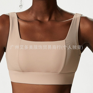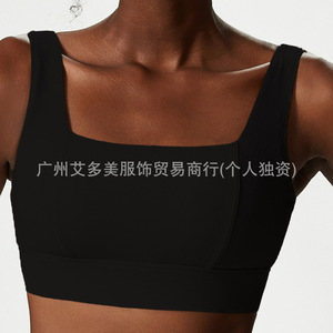 alo无痕杯运动内衣拼螺纹方领调节扣运动文胸 大码瑜伽健身内衣