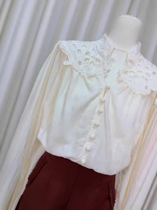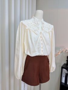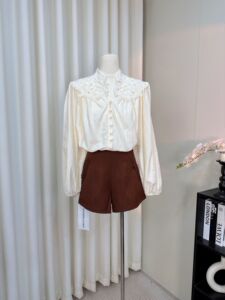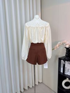 『欣幸』2025早秋时尚同款镂空刺绣高质感长袖衬衫上衣短裤套装女