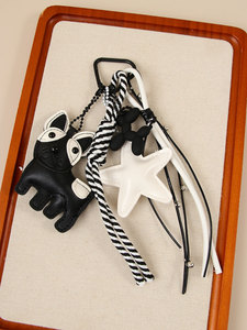 黑白风MIU系可爱法斗小狗星星皮革包包挂饰小众创意百搭配件挂件