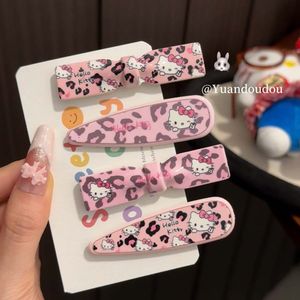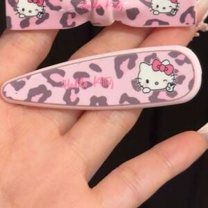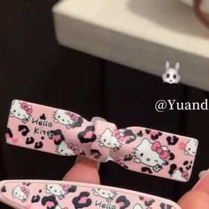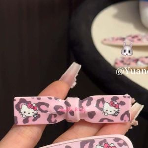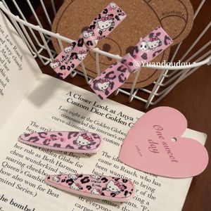 秋季新款粉色豹纹猫咪领结发夹日系甜美少女风侧边鸭嘴夹发卡发饰