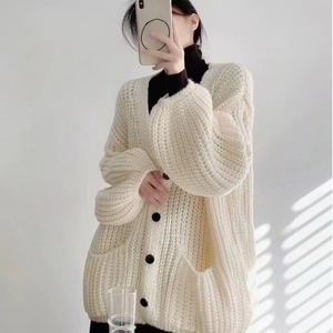 加厚粗线马海毛秋冬新款针织开衫女装宽松慵懒风复古休闲毛衣外套