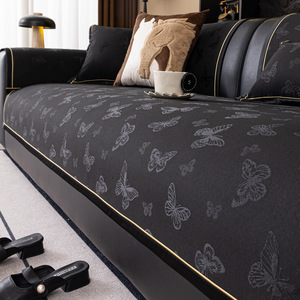 轻奢雪尼尔沙发垫四季通用新款2025防滑直排皮沙发坐垫套罩盖布C&