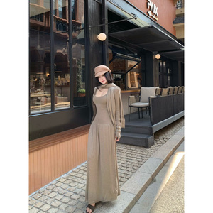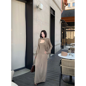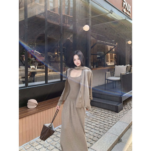 昕可达 雕塑美学 针织开衫背心裙围巾三件套