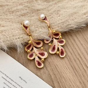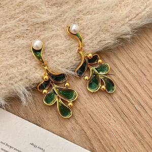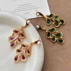 复古珐琅彩滴釉耳坠法式中古宫廷耳环夸张小众设计高级感耳饰批发