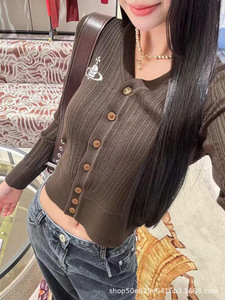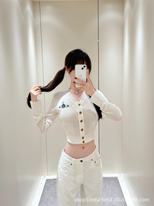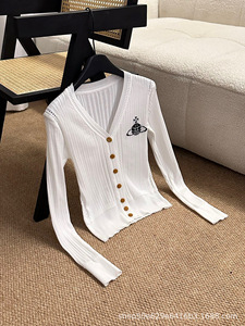 高版南油2025早秋新款vivi刺绣土星提花V领长袖开衫针织衫