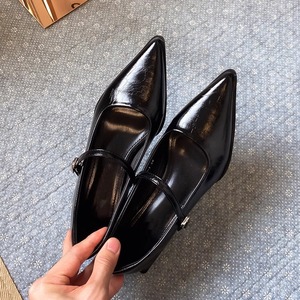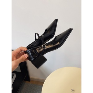法式通勤粗跟玛丽珍鞋尖头浅口中跟一字带复古单鞋女