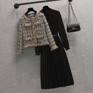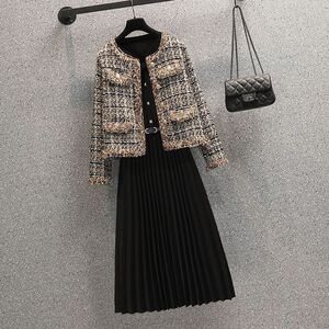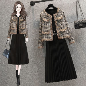 秋季套装女2025新款大码女装小香风外套女气质显瘦连衣裙子两件套